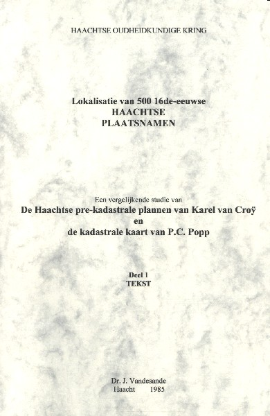 - Vandesande, J., Lokalisatie van 500 16de-eeuwse Haachtse toponiemen,, Haacht, 1985.